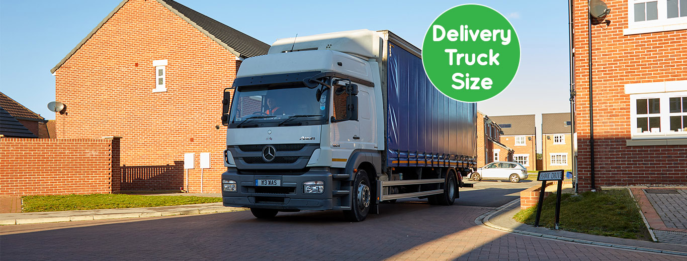 We strive to make our deliveries as eco-friendly as possible and build our loads efficiently and effectively within each area. This means your order may arrive on 7.5, 18 or 26 tonne vehicle with a tail-lift and a manual pump trolley. We do not use any cranes or hi-abs for our deliveries. We advise that the vehicles are slightly larger than a standard dustbin lorry, therefore there needs to be an adequate amount of space for the vehicle, with no obstructions or restrictions. If you request for a loose load delivery, an artic or 8 wheeler vehicle will be used.